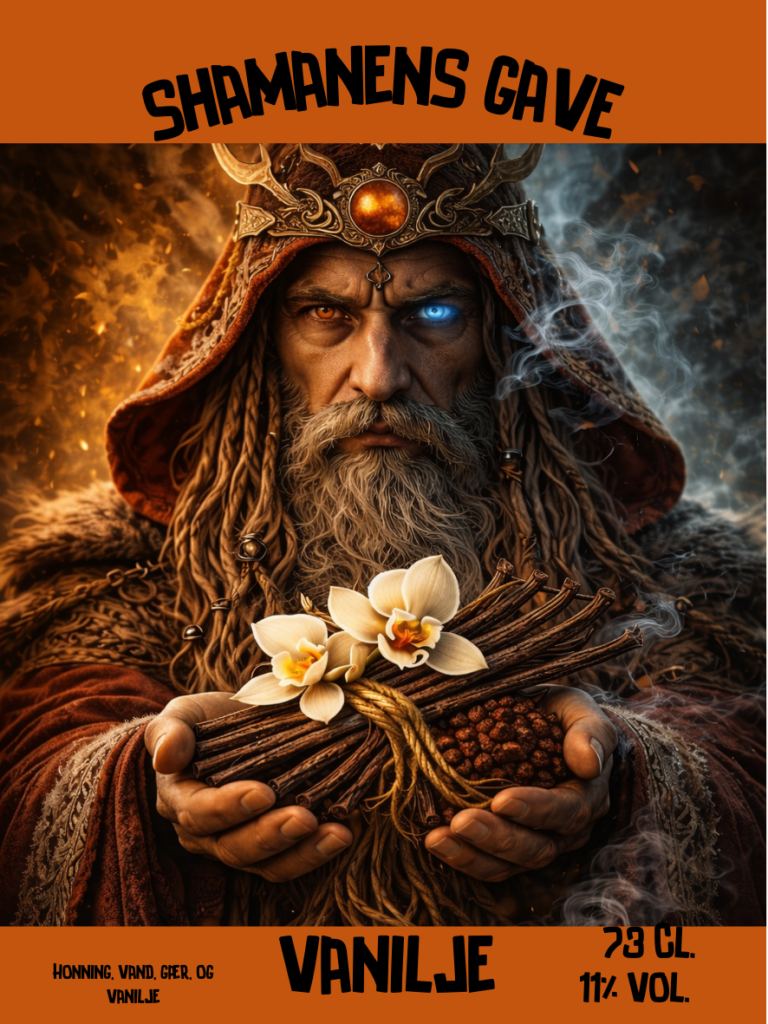 - Shamanens Gave – Mjød med ægte bourbon vanilje med hel vanilje stang i flasken