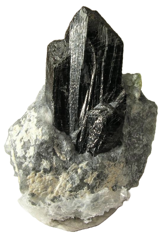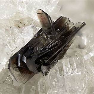 Monokliniske prisme- eller tabulære krystaller; kan også forekomme som radiale fibrede / botryoide masser.