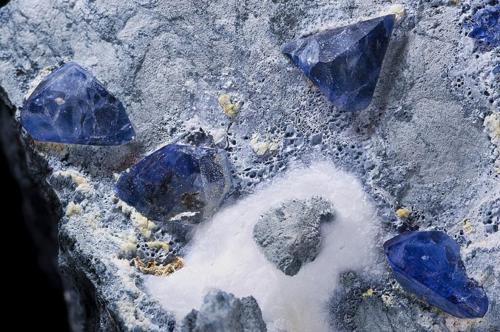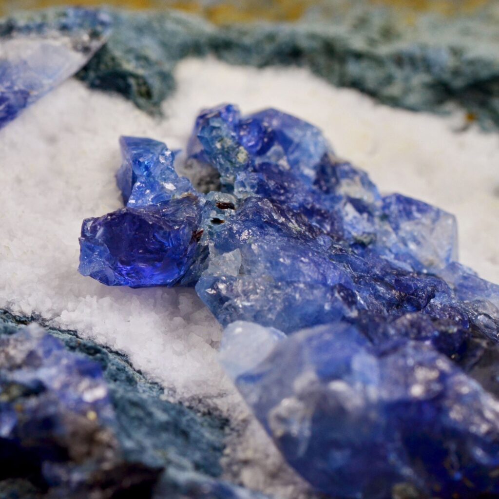 Blå (fra lys til dyb safirblå), farveløs, violet, og meget sjældent pink.