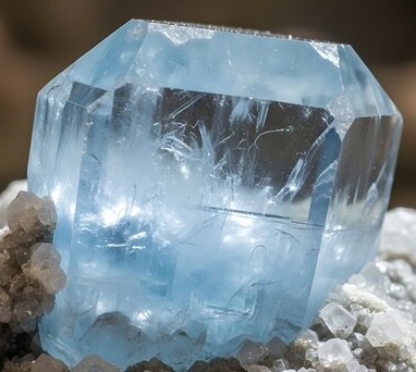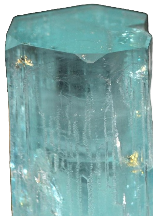 Seks-sidede prismatiske krystaller, kan have glitrende indslag pga. beryllium, facetteret som ædelsten – typisk transparent med lysreflekterende effekter. Overfladen er glasagtig glans, meget klar