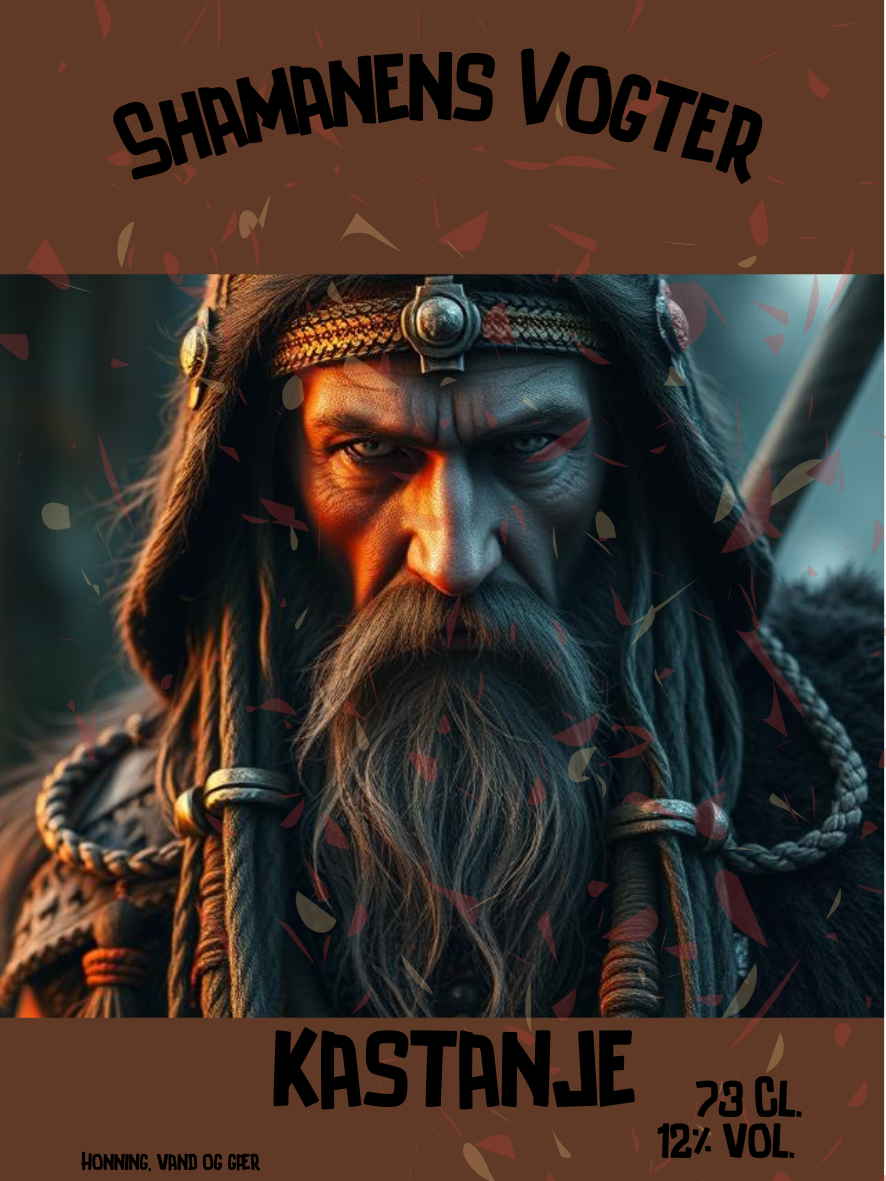 Shamanens Vogter – Kastanje er en markant og fyldig mjød, brygget på den karakteristiske, mørke kastanjehonning, som giver en intens og dyb smagsprofil.