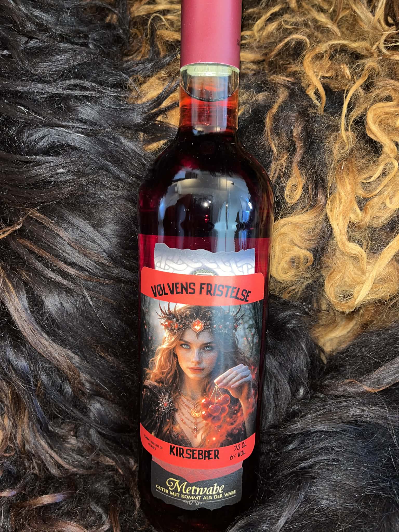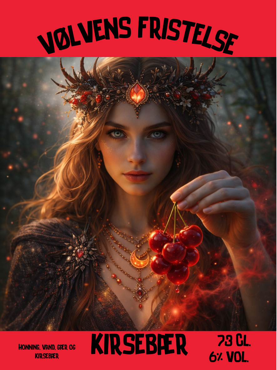 Vølvens Fristelse – Kirsebær, er en uimodståelig sommermagi på flaske – sødmefulde kirsebær møder den naturlige honningsødme i en let og forfriskende mjød.