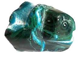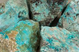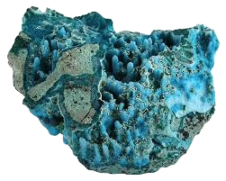 Ofte forvekslet med turkis – men er kemisk helt anderledes. Chrysocolla med høj kvartsandel sælges nogle gange som “chrysocolla-kvarts” Farverne skyldes kobberindholdet