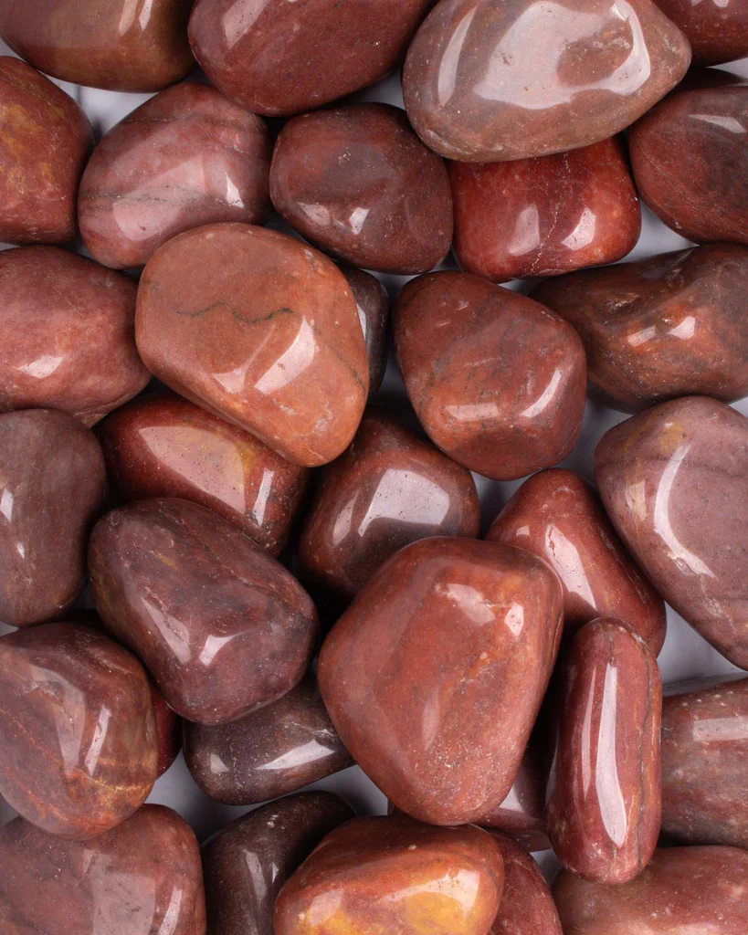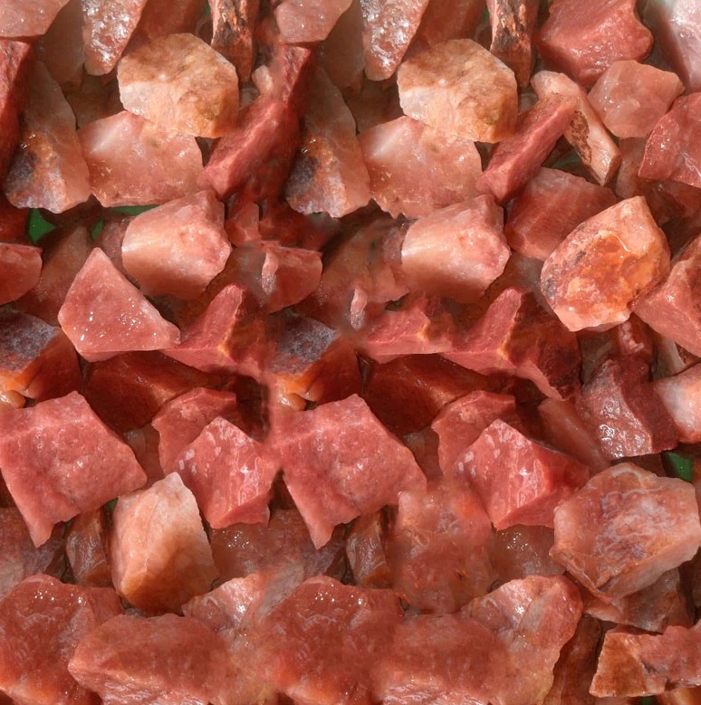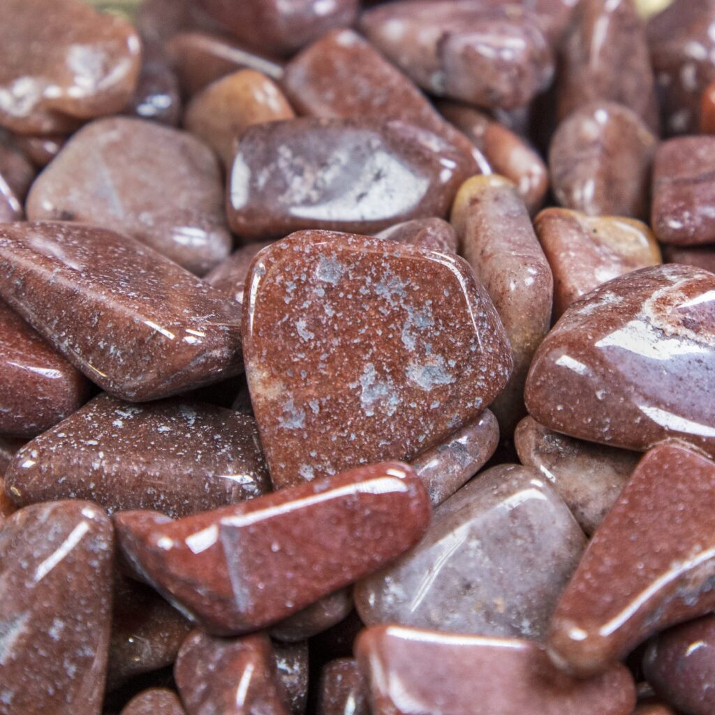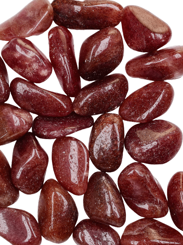 Det brogede mønster i rød aventurin er skabt af tilstedeværelsen af jernoxid og andre spormineraler.