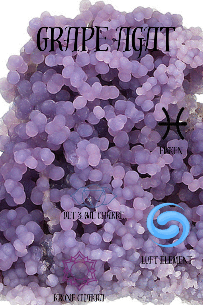 Drue agat er en enormt kraftfuld sten som har de mest vidunderlige healende energier. Den arbejder aktivt med at forbinde dig dybere til dit tredje øje, så din intuition bliver stærkere. Den knytter dit kronechakra sammen med dit tredje øje, hvilket er fantastisk hvis du arbejder med clairvoyance, engle eller kontakt til den anden verden. Den er vidunderlig hvis du oplever at dine drømme er begivenhedsrige og fulde af symboler, så du bedre kan forstå de budskaber du får derigennem. Den er kendt for at heale på vrede og angst, og er en dejlig krystal at have på dit sengebord. Drue agat er en unik sten, der har sit helt eget look. Fra bleg lavendel til dyb lilla, Drue agat beskytter dit sind, hjerte og sjæl mod negativitet. Den bringer dig levende drømme og giver dig mulighed for at fortolke, hvad dit sind kan fortælle dig gennem disse drømme. En kraftfuld sten af beroligende og stabilitet. Drue agat er teknisk set ikke en agat, fordi den ikke har nogen bånd. Men ligesom agat er det en form for Kalcedon. Drue agat er en beroligende sten, der fremmer stabilitet og ro. Den er også kendt for beskyttelse mod negativ energi, fremmer af sikkerhed og selvtillid, assistere mægling, fremmer fredelige drømme og inspirerer til selvtillid. Drue agat skærmer dig mod negativ energi, og det skaber en følelse af tryghed, især i tider med følelsesmæssig stress. Den giver dig mulighed for at oprette forbindelse til din spiritualitet og inspirerer dig til at kommunikere med jordens positive energi. Drue agat udsender varm beskyttende energi, der beskytter dit sind og dine følelser. Den Inspirerer til fredelig søvn, kommunikerer med dine drømme, styrker din intuition, hjælper til at opnå klarhed og ro i sindet. Den inspirerer til fokus, så du kan definere dine vigtigste ønsker. Det hjælper dig også med at forbinde dig med dig selv og din indre sandhed. Drue agat er en fremragende sten til søvn og drømmearbejde. Det fremmer fredelig og afslappende søvn. Det giver dig også mulighed for at forbinde med dine drømme og hjælper dig med at huske og fortolke dem. Udstråler feminin energi og hjælper dig med at forbinde dig til gudinden indeni og det guddommelige feminine.
