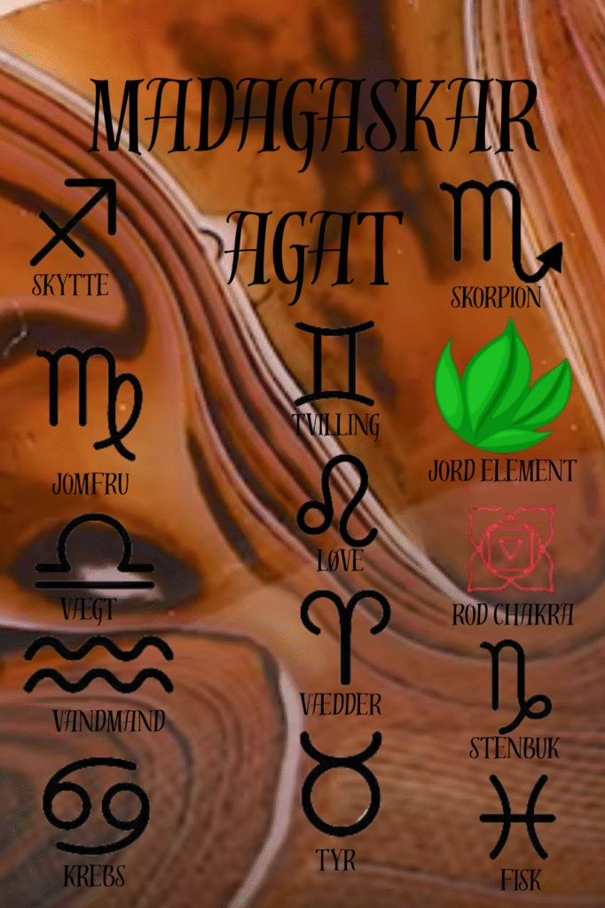 Madagaskar agat, også kendt som Malagasy agat, er en unik og smuk ædelsten, som er værdsat af samlere og entusiaster rundt om i verden. Med sine karakteristiske båndmønstre og brede udvalg af farver er Madagaskar agat en alsidig sten, der kan bruges til en række forskellige formål, fra fysisk helbredelse til åndelig vækst og transformation. Madagaskar agat har en jordforbindelse og stabiliserende indflydelse, der kan hjælpe med at balancere kroppens og sindets energier. Den hjælper med at fremme følelser af indre fred og stabilitet, hvilket gør det til et populært valg blandt lysarbejdere og healere. Madagaskar agat menes at have en række spirituelle fordele, herunder at fremme en følelse af sikkerhed og stabilitet, hjælpe med meditation og åndelig vækst og hjælpe med at balancere energierne i krop og sind. Den menes også at tilbyde beskyttelse mod negative energier. Ud over dens åndelige fordele bruges Madagaskar agat også i metafysiske praksisser for at hjælpe med at fremme følelsesmæssig balance og stabilitet, øger kreativitet og selvudfoldelse og booster selvtillid og selvværd. Det siges også at hjælpe med at forbedre kommunikationen og fremme positive relationer. Madagaskar agat menes at have en række fysiske helbredende fordele, herunder fremme af sund fordøjelse, lindre symptomer på angst og stress og støtte immunsystemet. Det siges også at være nyttigt for dem med kronisk smerte eller betændelse, såvel som dem, der kommer sig efter skader eller operationer. I Feng Shui menes Madagaskar agat at have en jordforbindelse og stabiliserende indflydelse, der kan bidrage til at fremme en følelse af ro og ro i hjemmet eller på kontoret. Det bruges ofte i de sydlige, sydvestlige og vestlige områder af rummet for at fremme stabilitet, sikkerhed og velstand.