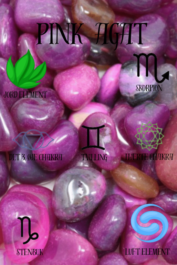 Pink agat er en fantastisk sten at have i din lomme, taske eller bh, i smykker eller som dekoration. Pink agat er en indfarvet sten og anbefales derfor ikke til anvendelse til krystalvand. Den kan med fordel anvendes under meditation