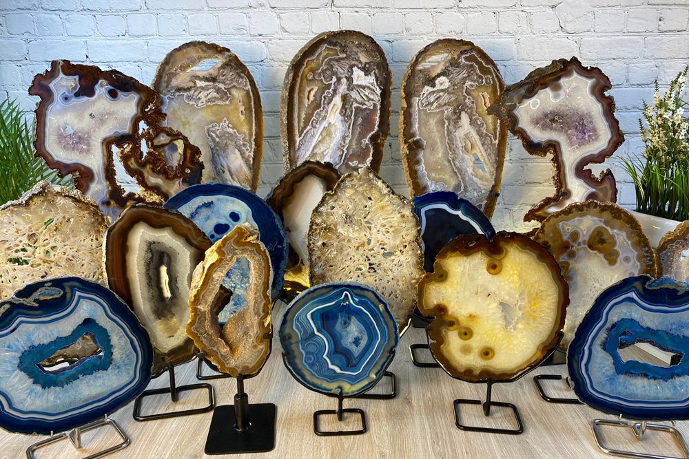 Da Skive agater kan skæres ud af alle typer agater, stammer disse fra hele verden