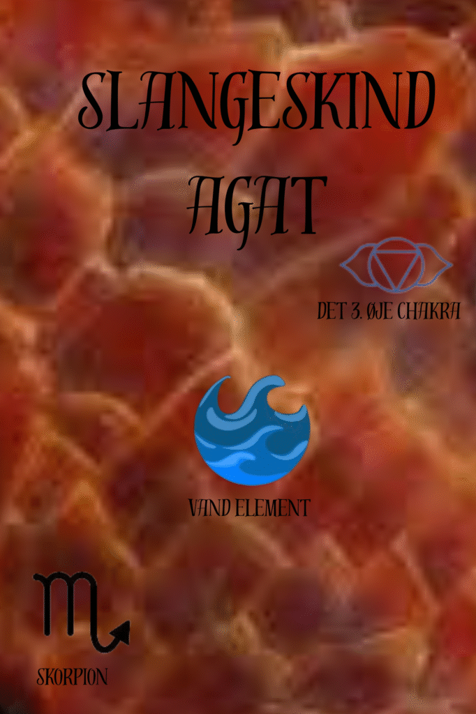 Slangehud / slangeskinds agat symboliserer venskab og styrker forbindelser med andre. Den fremmer harmoni og samhørighed i relationer. Stenen er kendt for sin evne til at lindre frygt fra dybet af dit indre væsen. Den skaber indre ro og hjælper med at overvinde bekymringer. Slangehud / slangeskind agat fungerer som et beskyttende skjold, der afskærmer dig fra negativ energi og skadelige påvirkninger udefra. Den giver styrken til at knokle igennem, når der er meget arbejde og til at bekymre sig mindre. Den minder dig om at du, ligesom slangen, kan skifte ham og komme videre i dit liv uden det, der tynger dig, samt om at give og modtage den kærlighed, der allerede er der. Den er god ved nedsat hørelse og maveproblemer. Som krystalvand eller olie kan den afhjælpe rynker og styrke din hud.