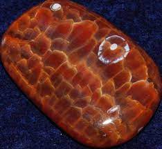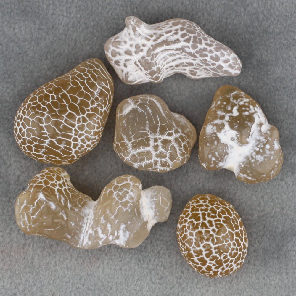 Slangehud / slangeskindsagat er lysebrun med en let gennemsigtig effekt, med hvide kridtagtige inklusioner i overfladen.
