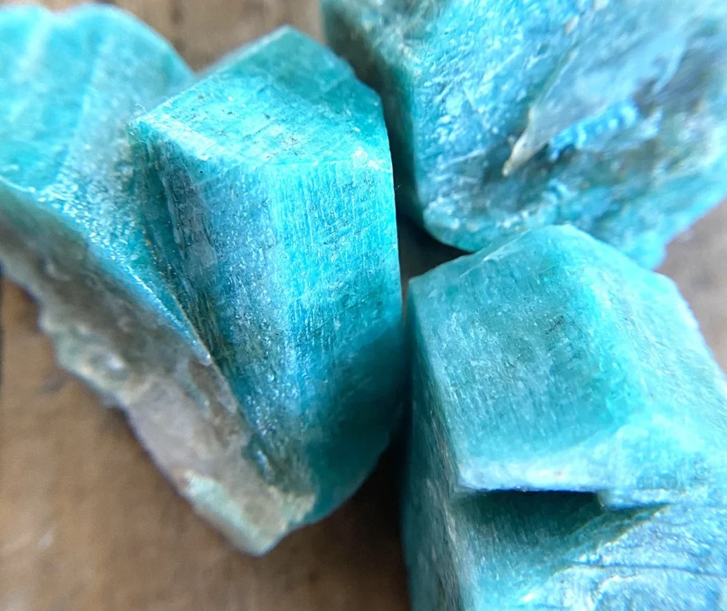 Jo mere blå farven i amazonit er jo mere bly indeholder stenen. Den blå amazonit dækker hos os over alt fra de helt lyse svage blå nuancer til de dybe blå nuancer