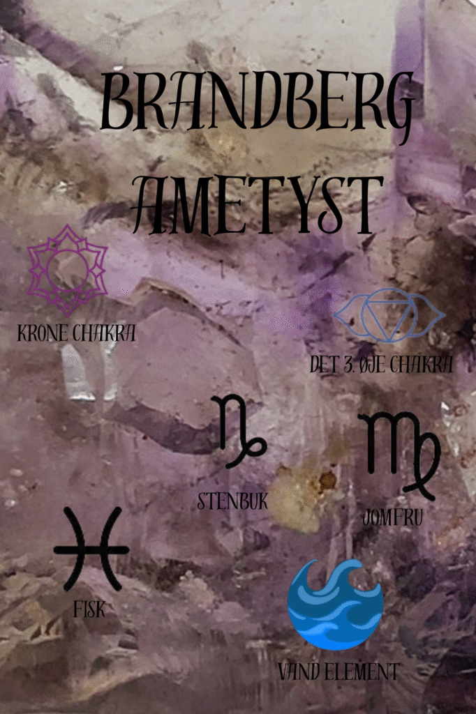 Brandberg er et meget berømt bjerg i Namibia. Det er et helligt bjerg, der er blevet betragtet som helligt af det indfødte San-folk i tusinder af år. Bjerget er dækket af over 45.000 klippemalerier. På grund af disse malerier er bjerget beskyttet, og ametyst minedriften foregår faktisk 20 miles væk i Goboboseb bjergene. Brandberg ametyst kombinerer den usædvanligt høje vibration af ametyst med den forstærkende kraft fra klar kvarts og røg kvarts. Dens energi inviterer os til at blive vores Højeste Selv og til at leve med værdighed og respekt for os selv og alle andre væsener. Brandberg ametyst opfordrer os til at handle med integritet, mod, dømmekraft og overbevisning. Den lærer os også at være medfølende, men også retfærdig. Brandberg ametyst stiller sindet til ro under meditation og hjælper os med at forblive jordnær, uanset hvad der sker omkring os. Den er en vidunderlig sten til shamanistisk arbejde, der giver os mulighed for bedre at kontrollere kraftfulde energier sikkert og bruge dem effektivt. Den forbedrer vores psykiske gaver og hjælper os med at udnytte både vores egne kræfter såvel som det guddommeliges uendelighed. Brandberg ametyst er særligt godt for alle, der er interesseret i at udforske eller forbedre energiarbejde såsom Reiki. Den er en fantastisk talisman til ædruelighed og til søvnløshed. Den er også en stor talisman for kræftpatienter, der gennemgår kemoterapi.
